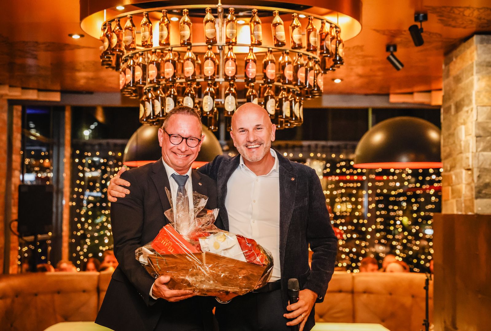 Am 28. November 2025 feierte die Firma ADMIRAL gemeinsam mit rund 210 Mitarbeitenden der Verwaltung ihre Weihnachtsfeier im Restaurant Barfüßer in Pfullendorf. In festlichem Ambiente begrüßte die Geschäftsführung alle Anwesenden und gab einen Rückblick auf das erfolgreiche Jahr sowie einen Ausblick auf 2026. Das abwechslungsreiche Abendprogramm sorgte für Unterhaltung und zahlreiche besondere Momente. Im Mittelpunkt standen die Ehrungen langjähriger Mitarbeiterinnen und Mitarbeiter: Insgesamt 28 der 46 Jubilare aus der Verwaltung, die dem Unternehmen seit 10, 15, 20, 25 oder 30 Jahren angehören, wurden mit liebevoll zusammengestellten Geschenkkörben gewürdigt. Besonders geehrt wurde Herr Ulrich Volkwein (Gebietsleiter in der Region West) anlässlich seines 30-jährigen Jubiläums. Ein weiterer Höhepunkt des Abends war die persönliche Übergabe eines Präsents von Herrn Martin Moßbrucker (Kaufmännischer Geschäftsführer) an Herrn Martin Restle (Vorsitzender der Geschäftsführung) für seine 40-jährige engagierte und erfolgreiche Unternehmensführung. Gemeinsam ließen die Gäste den Abend in geselliger Runde ausklingen.